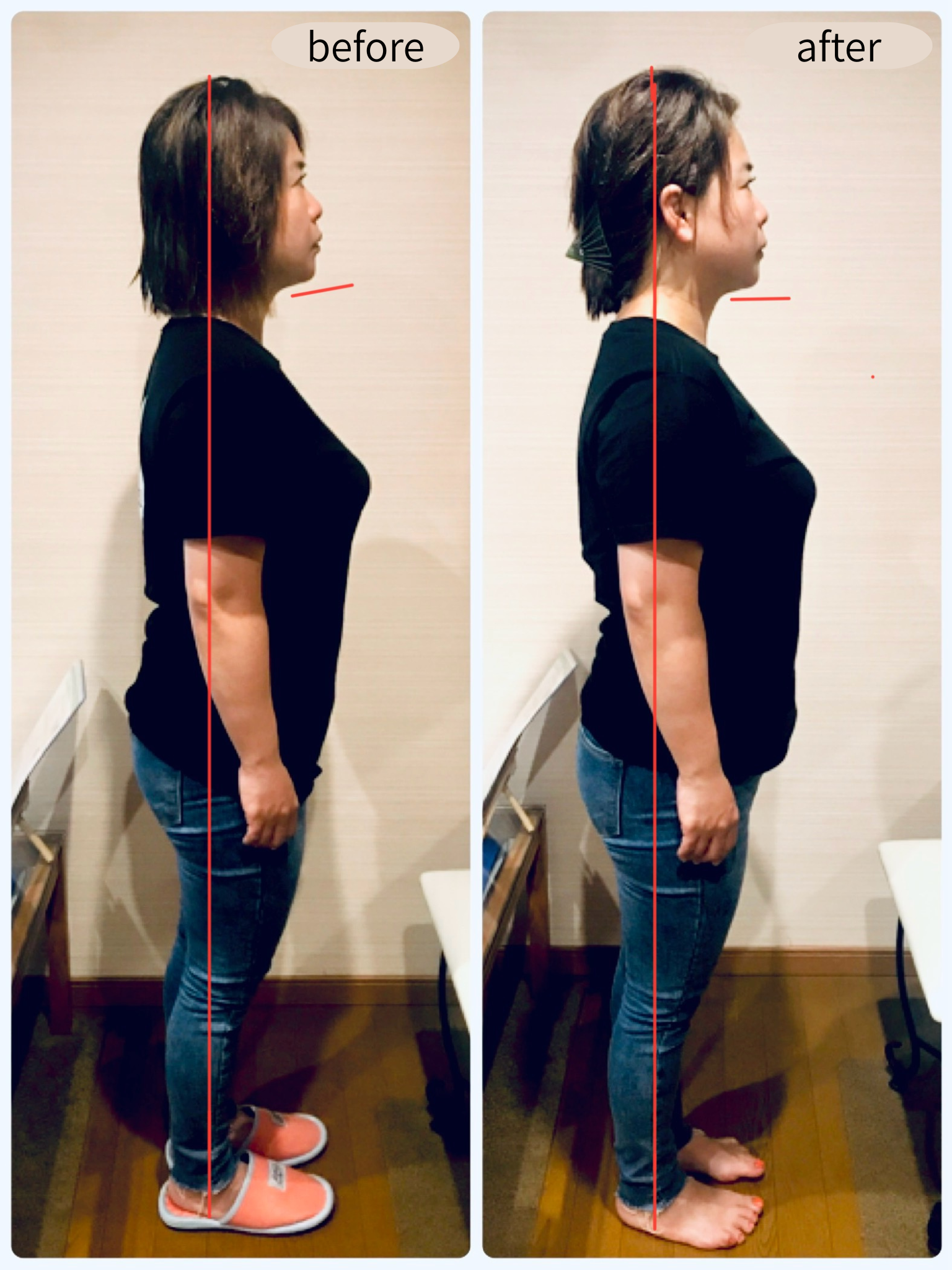 翌日の身体を見たら足は真っすぐになりあご回りもスッキリ